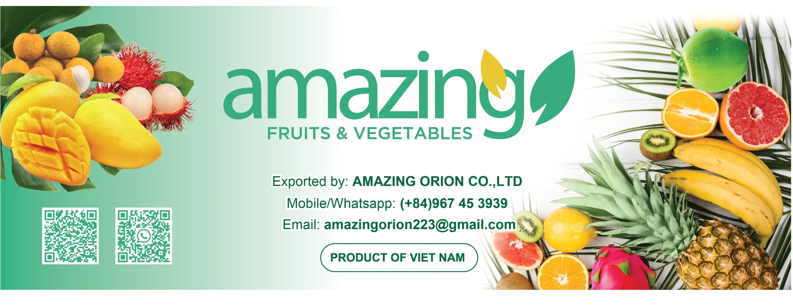 With the motto of “Bringing nature back to modern life“, AMAZING ORION Fruits & Vegetables has been constantly making efforts to maintain the position and the trust of Valued Customers. In addition, we always aim for development to achieve, the highest standards for personnel, farm, factory, and warehouse system with modern machinery. Coming to AMAZING ORION Fruits & Vegetables, you will satisfy with high-quality products at competitive prices.